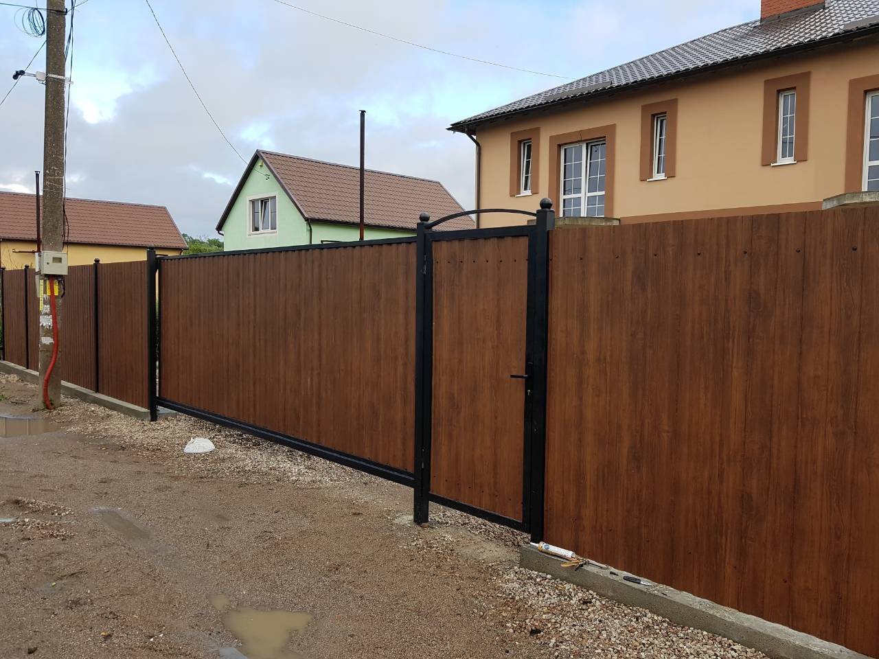 Лицевую часть участка, калитку, ворота и фронтальное ограждение заказывают из евроштакетника, профнастила, дерева, ковки. А на стороны, граничащие с соседями, ставят сетку-рабицу, 3Д.